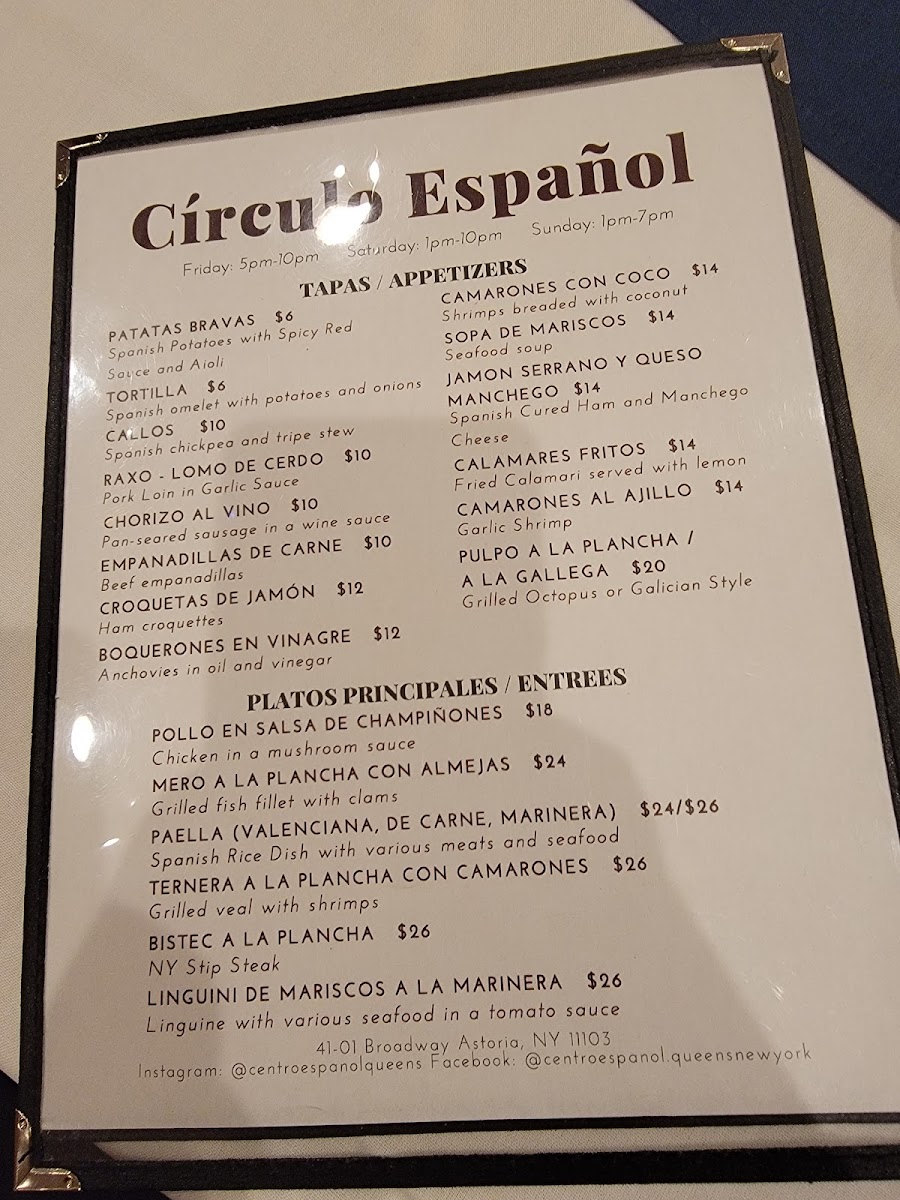 Introducing the Menu: Circulo Espanol